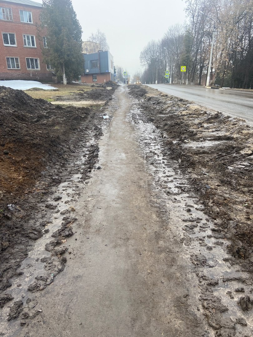 26.03.2024 город Кашира. Ул. Клубная, 5А. Когда в порядок приведут? Тротуар обезображен до невообразимости. Люди ходят по грязному и битому тротуару. Ходить невозможно! Просьба отреагировать.