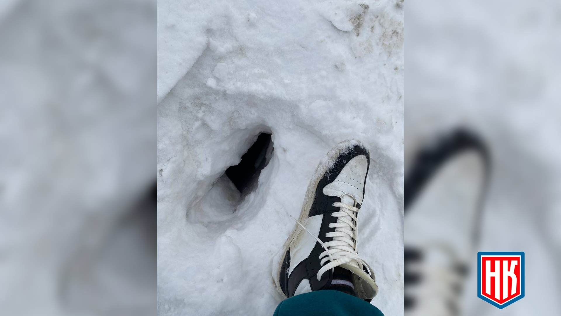 13 января в городе Нягань было выявлено опасное нарушение на тротуаре: открытый канализационный люк, который не имеет никакого ограждения.