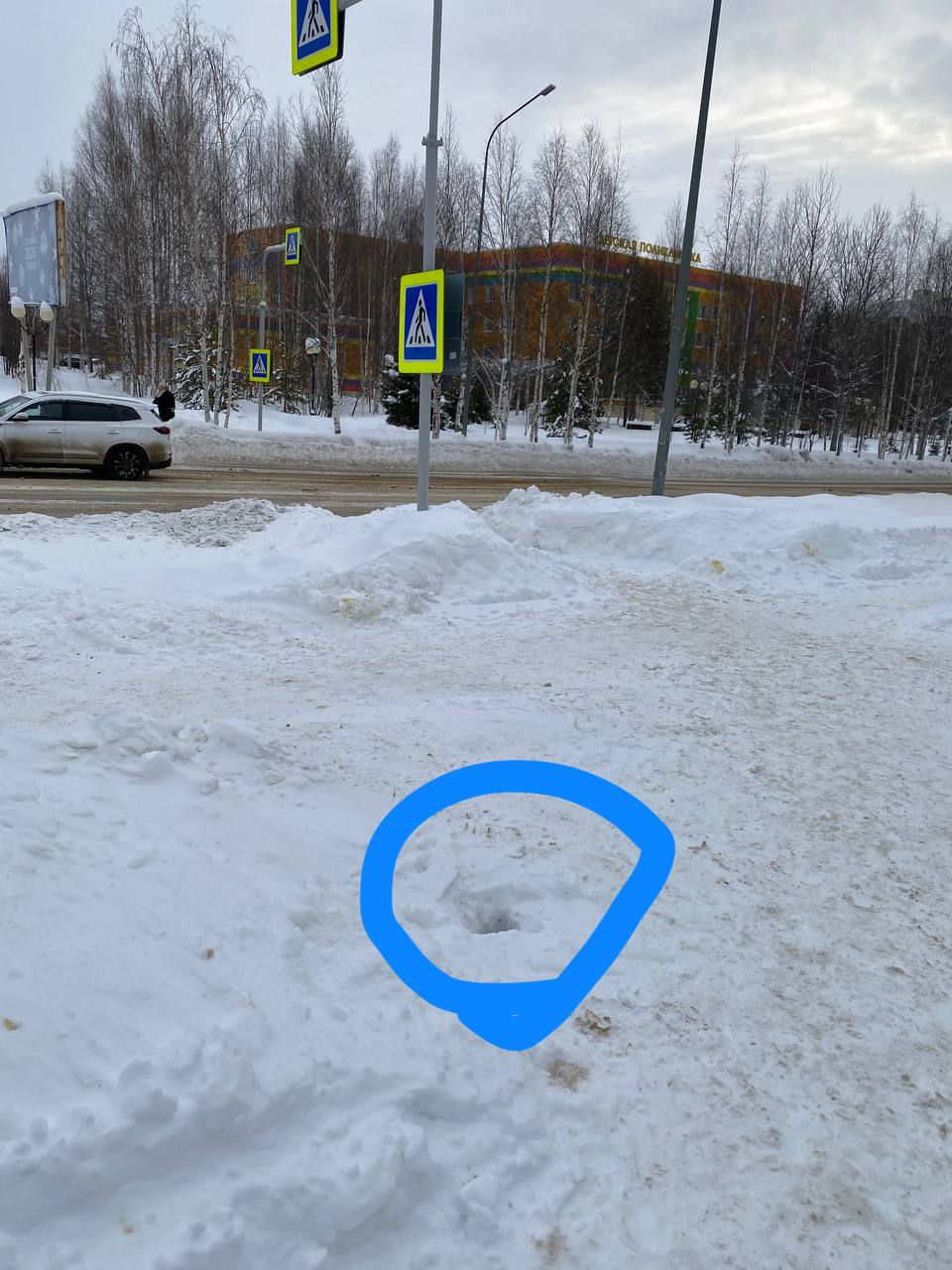 Тротуар в Нягани стал опасным из-за отверстия в канализацию