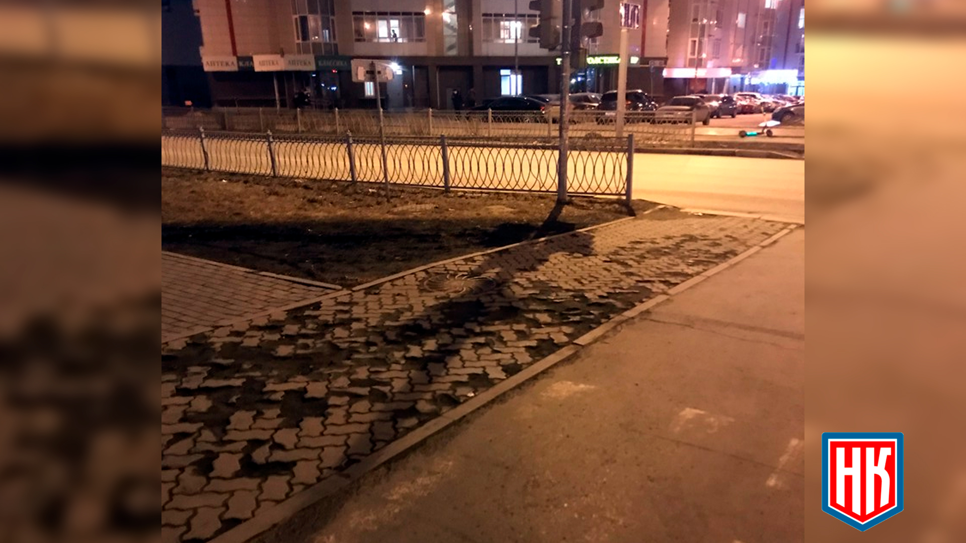 Тротуарная плитка на перекрёстке Циолковского — Сурикова в Екатеринбурге в ужасном состоянии