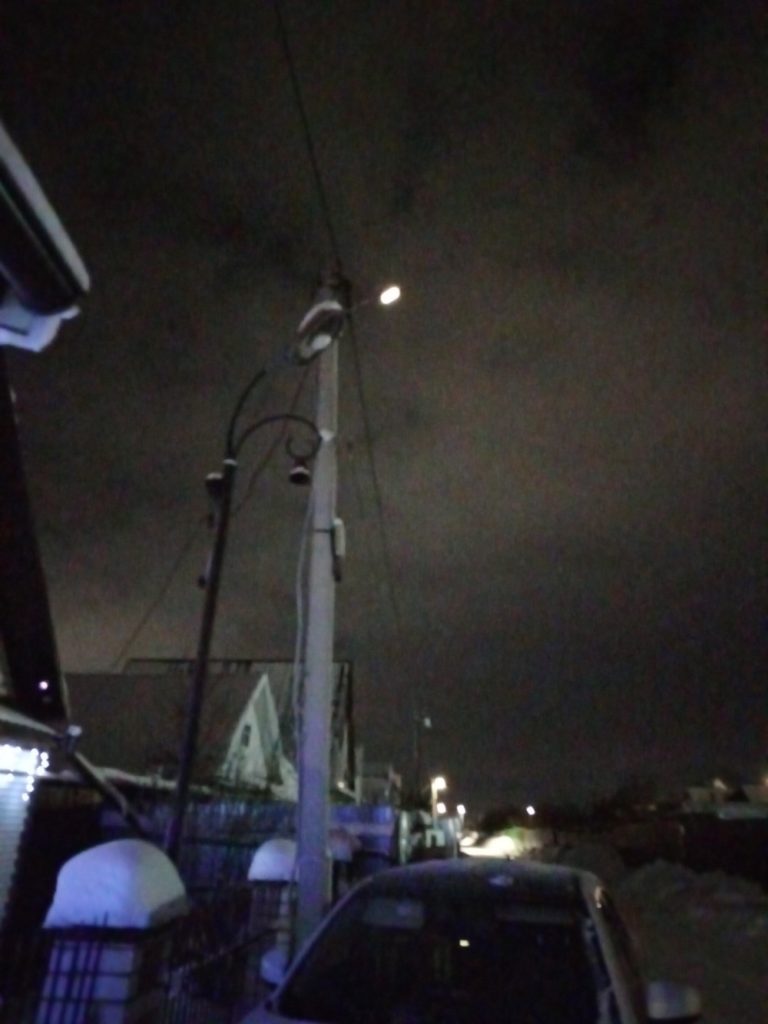 9.01.2024. г. Волжск , ул. Садовая 11. Фонарь уличного освещения горит в полнакала. Толку нет от такого света.