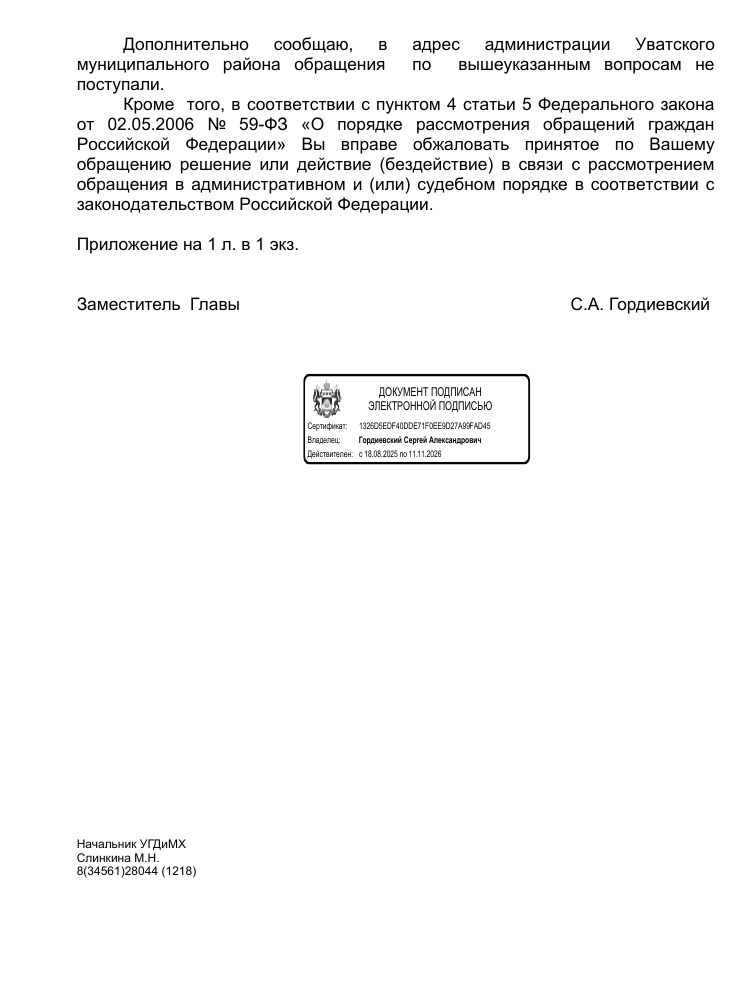 Благодарим неравнодушных граждан за Ваши обращения. Если Вы не согласны с данным ответом Администрации Уватского муниципального района, пожалуйста, сообщите об этом Нам (желательно с фото/видео доказательствами выполнения работы в неполном объеме или ее невыполнении).