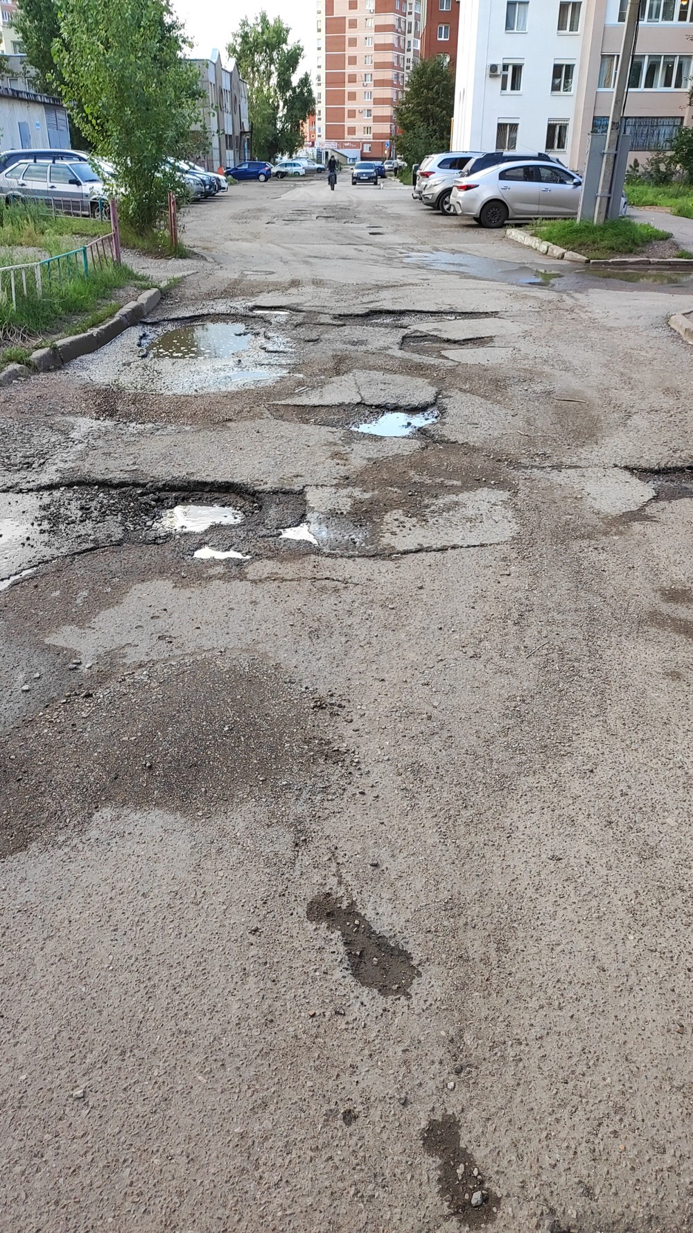 22.08.2024. г. Уфа, ул. Набережная реки Уфы, д.63. Ужасные ямы, мешают проезду транспорта, пешеходам.