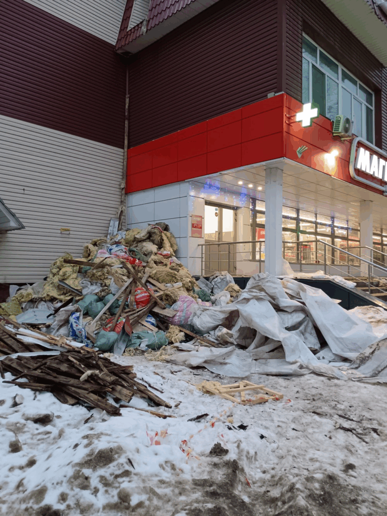 Уже месяц лежит гора отходов у магазина «Магнит» в Лыткарино