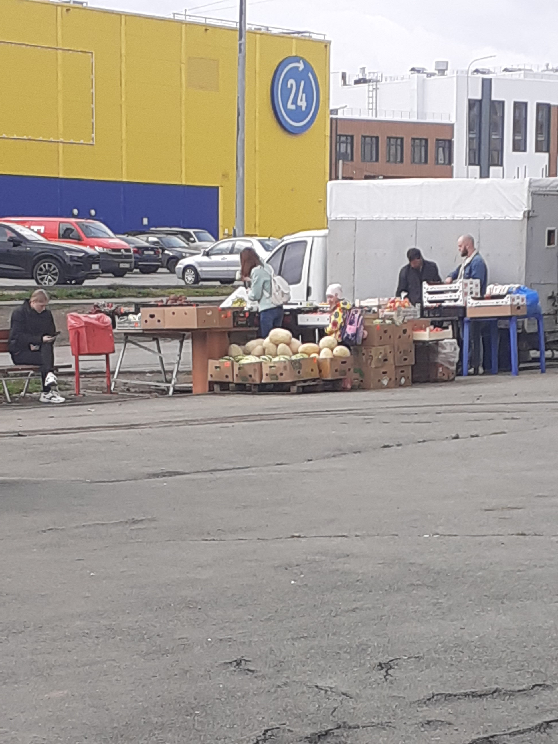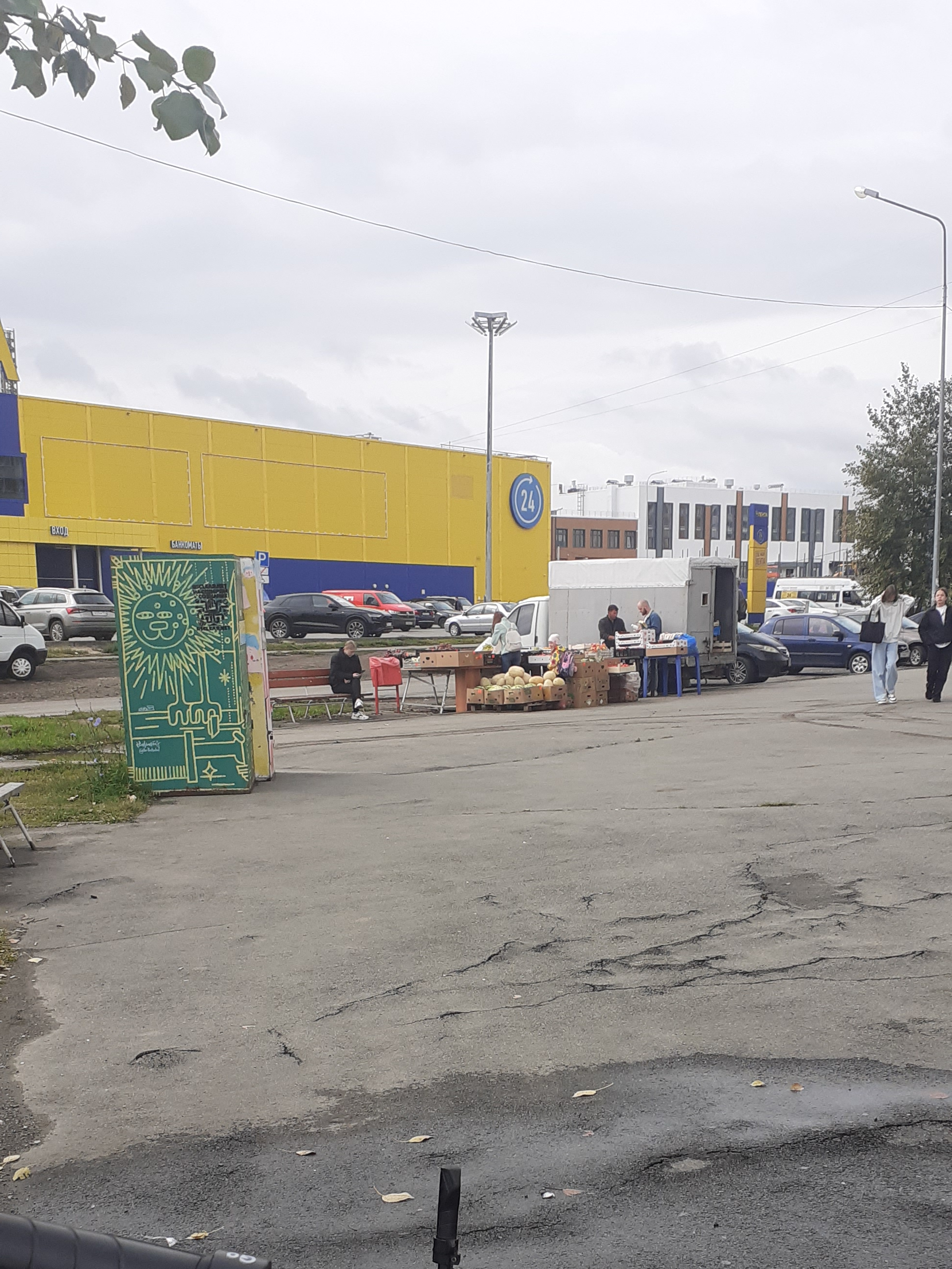 г. Челябинск. На ул. Сахарова, 20 уже не первый год торгуют с поддонов мигранты, загадили весь газон, оккупировали лавочки.