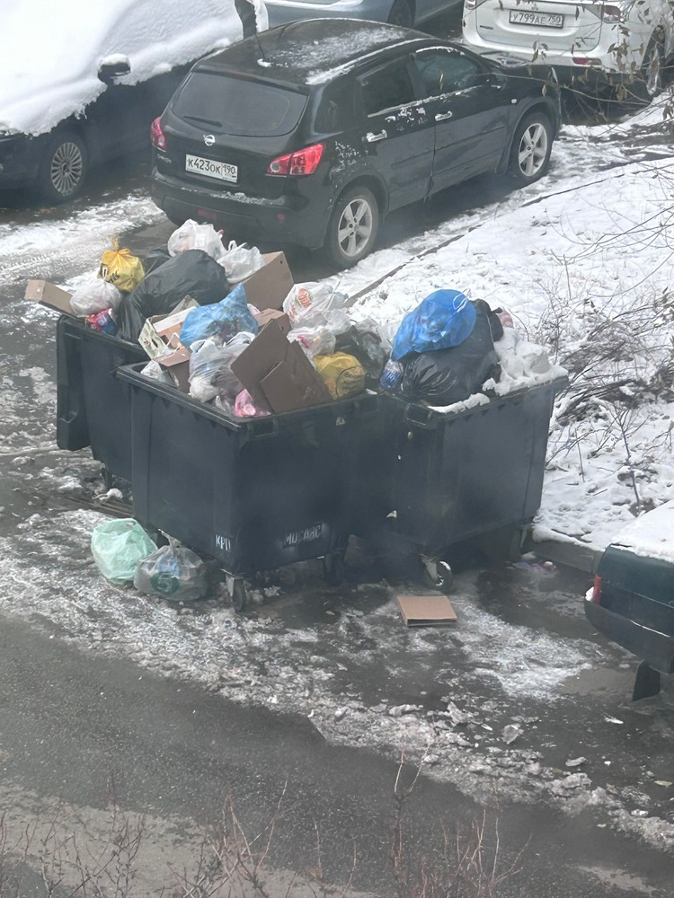 Московская область, г. Дзержинский, ул. Томилинская, 21. Возле подъезда стоят мусорные баки, тем самым нарушая права жильцов. Администрация игнорирует, только пишет отписки и всё. Стоит вонь и грязь. Прошу решить проблему. Рядом мусорной площадки нет, и таким способом они решили организовать площадку. Фото прилагаются.