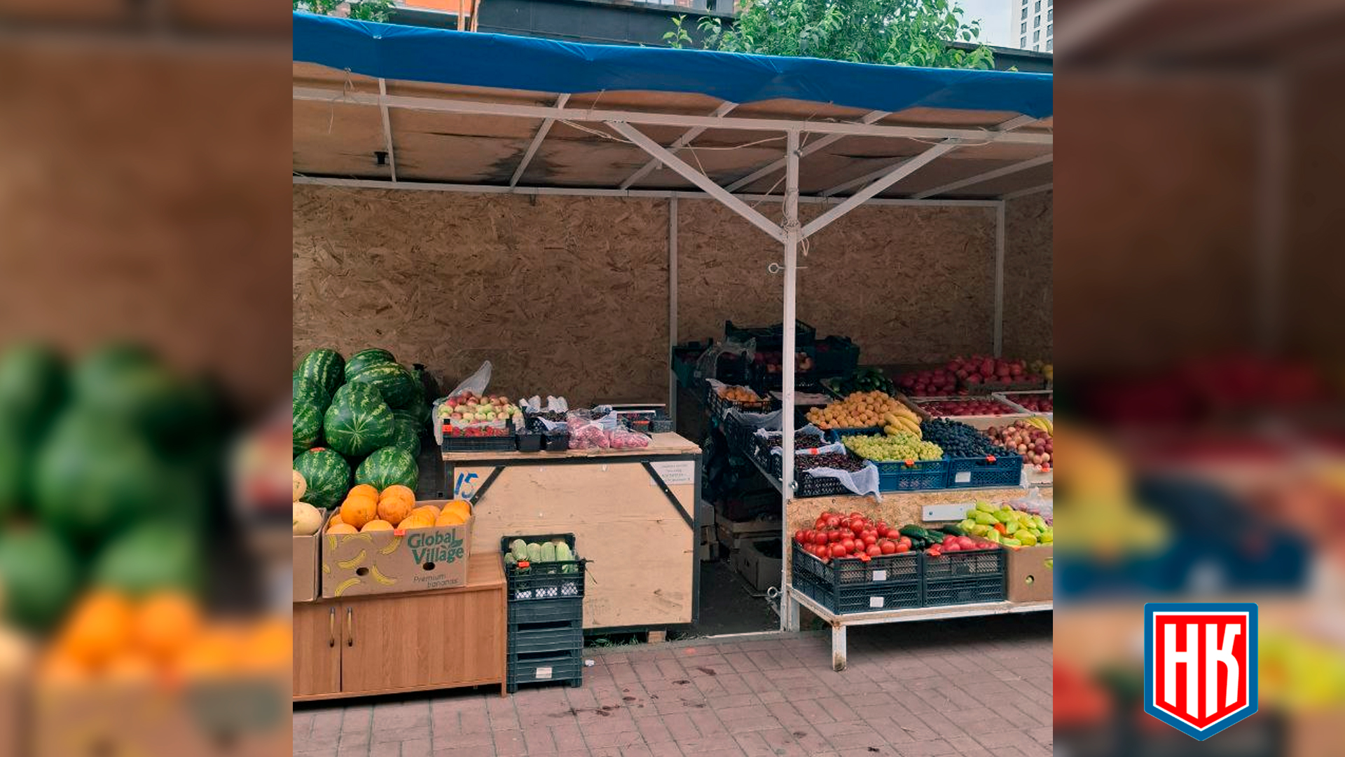 16.06.2025, 19:00. г. Екатеринбург, ул. Даниловская, 8. Незаконная торговая точка установлена на газоне. Отсутствует уголок покупателя и какая-либо другая информация о предприятии.