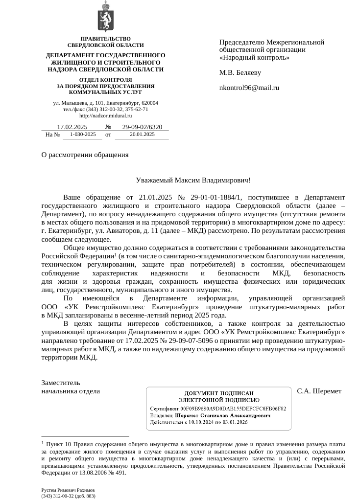 Благодарим неравнодушных граждан за Ваши обращения. Если Вы не согласны с данным ответом Департамента ГЖИ Свердловской области, пожалуйста, сообщите об этом Нам (желательно с фото/видео доказательствами выполнения работы в неполном объеме или ее невыполнении).