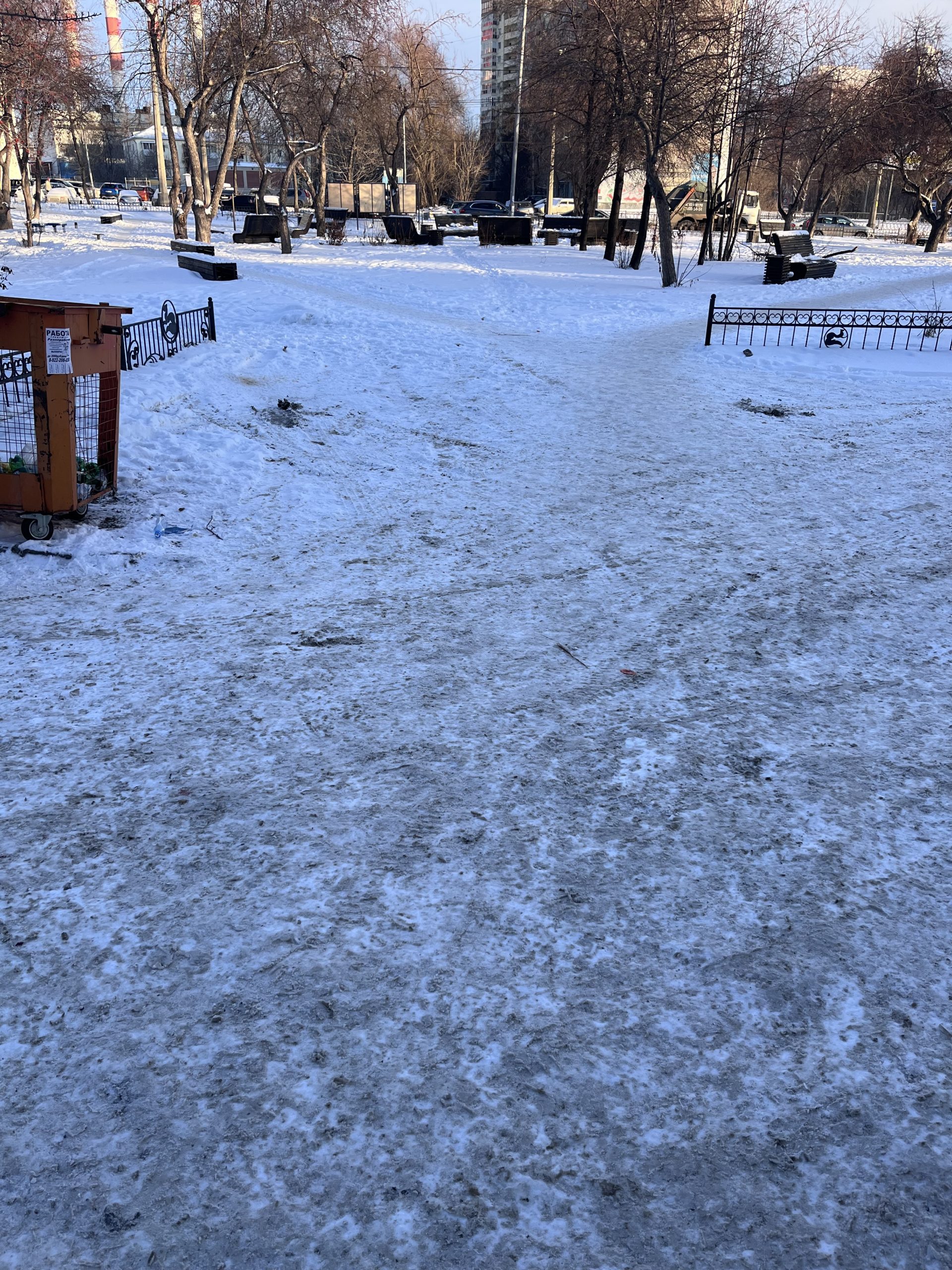 11 декабря 2024 года жители дома № 8 по улице Белореченской в Екатеринбурге пожаловались на крупную льдину во дворе, из-за которой передвижение стало опасным, особенно для пенсионеров. Горожане отметили, что дворники обязаны очищать лёд и снег до асфальта.