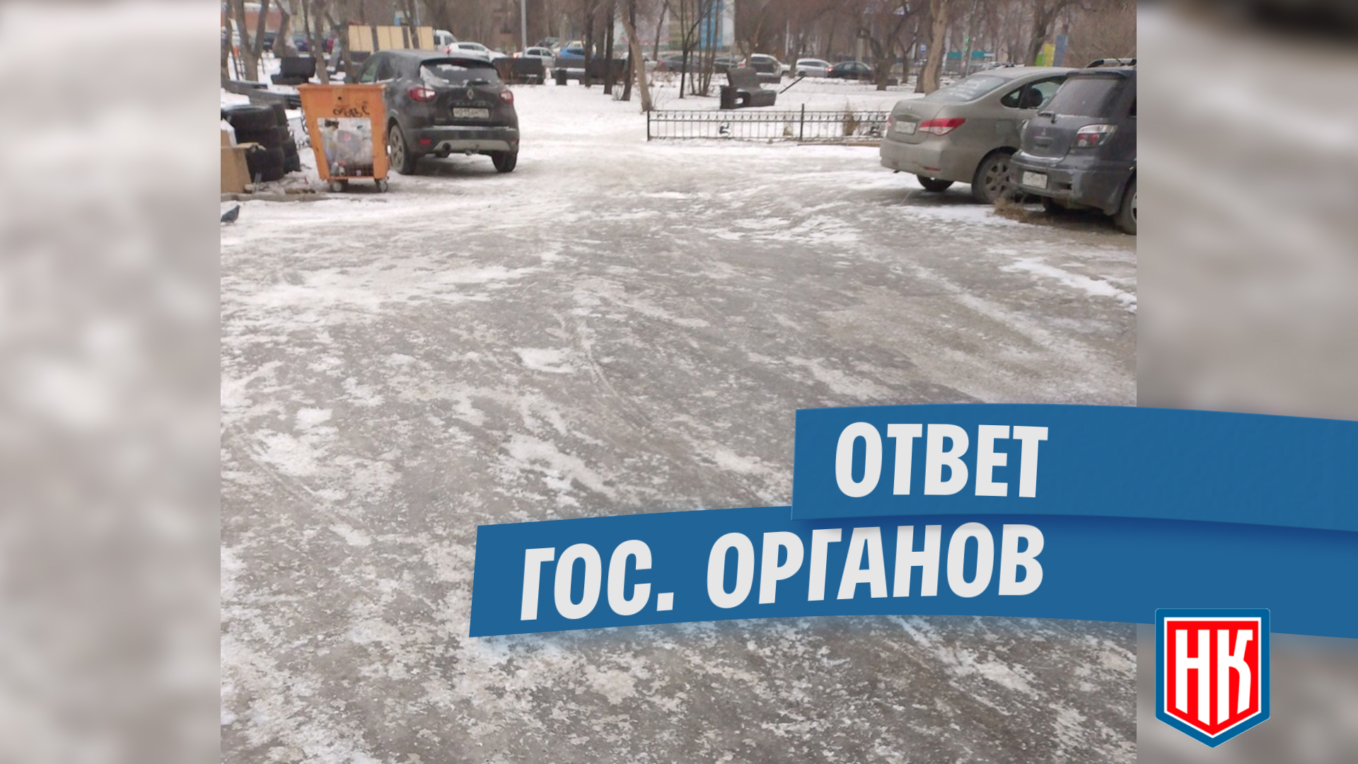 24 декабря 2024 года специалистами отдела инспекционного контроля, коммунальной энергетики и развития ЖКХ была проведена проверка территории. По результатам обследования установлено, что наледь устранена, а территория находится в удовлетворительном состоянии. Фотоматериалы, подтверждающие выполнение работ, прилагаются.