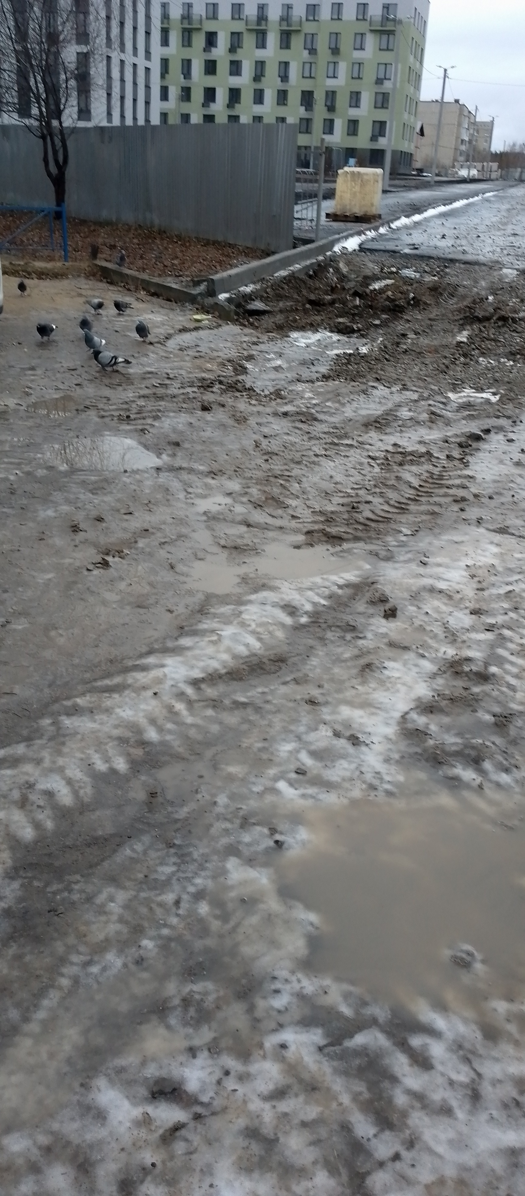 Дорога, проложенная от новых домов по их плану, проходит по территории нашей автомобильной парковки. Земля отмежевана и относится к дому № 5. Строители демонтируют стоянку, снимают плиты и делают по ней дорогу. Жители дома вышли к строителям с целью предотвратить захват земли. Все возмущены нарушением прав собственников, строители продолжают разбивать тяжелой техникой территорию стоянки, убирая бордюры. Техника продолжала работать при нахождении жильцов на стоянке (они вышли в знак протеста).