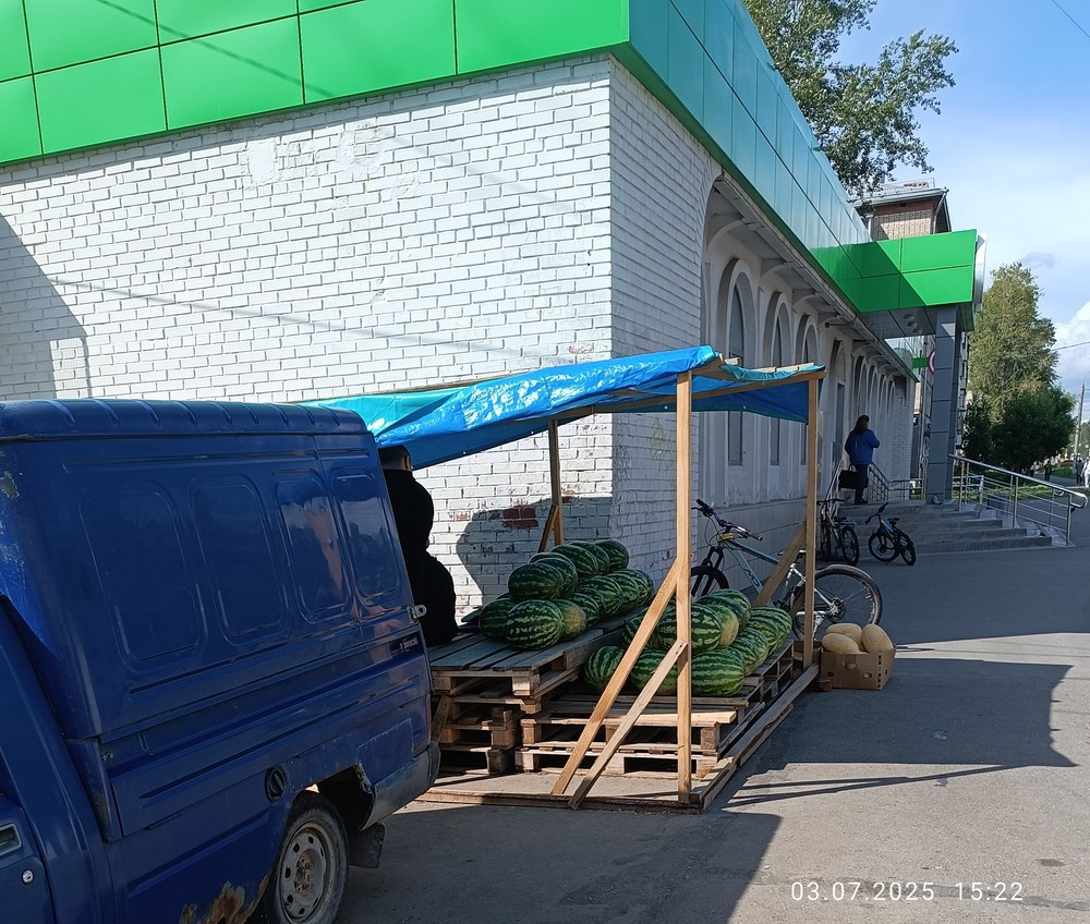 Кроме того, южнее дома №13 ведётся регулярная торговля на неразмежёванной муниципальной земле. На месте размещена палатка, где работают продавцы с иностранным гражданством, но также не выдаются чеки, и объект не включён в официальную схему.
