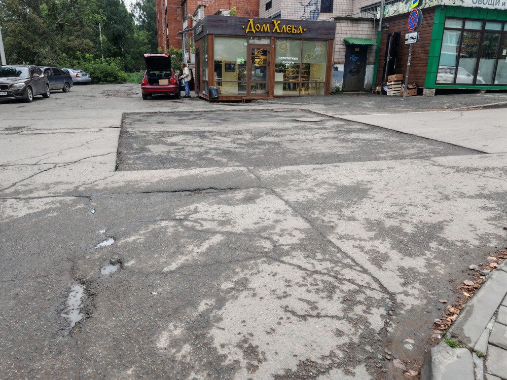 19 августа 2025 г. Ижевск. Ул. Льва Толстого. Асфальт в убитом состоянии. Обращения в администрацию района/города ничего не решают.