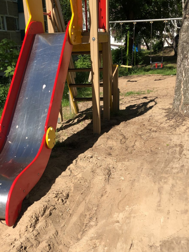 В Казани убрали трубу, торчащую на детской площадке на ул. Солидарности