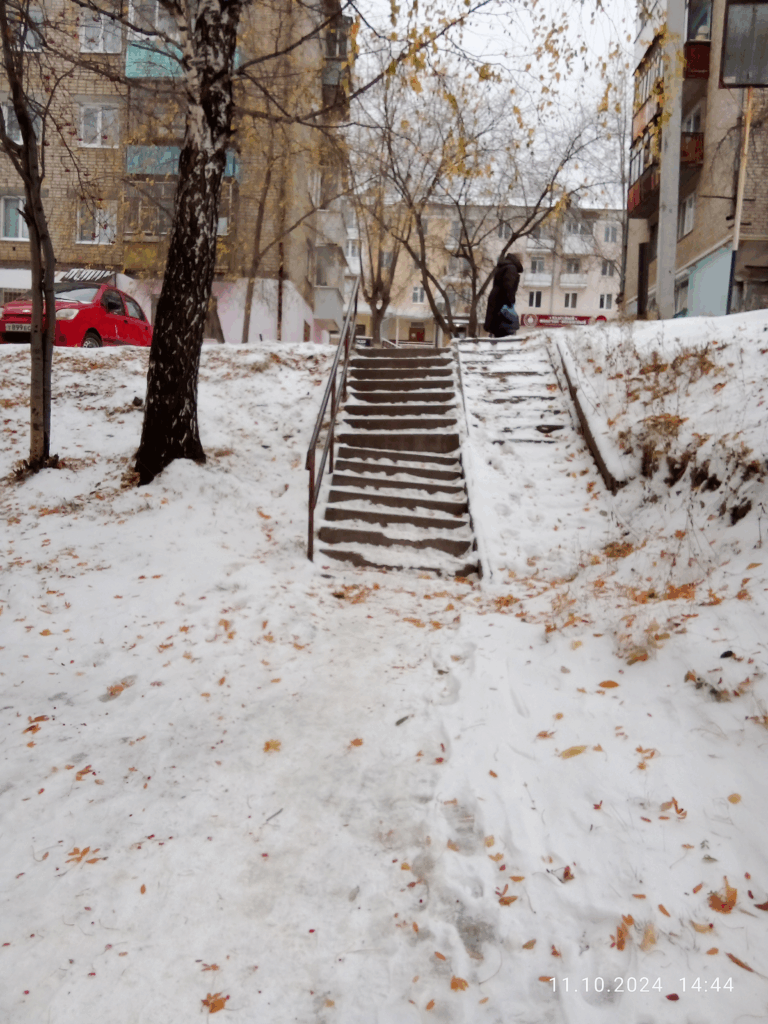 Через форму обращения на сайте было получено сообщение о том, что на территории около дома №68б в Кировграде, Свердловской области, не проводится уборка. Жители сообщили, что лёд, скопившийся на дорожках, не был убран, а мусор и опавшая листва остаются на месте.