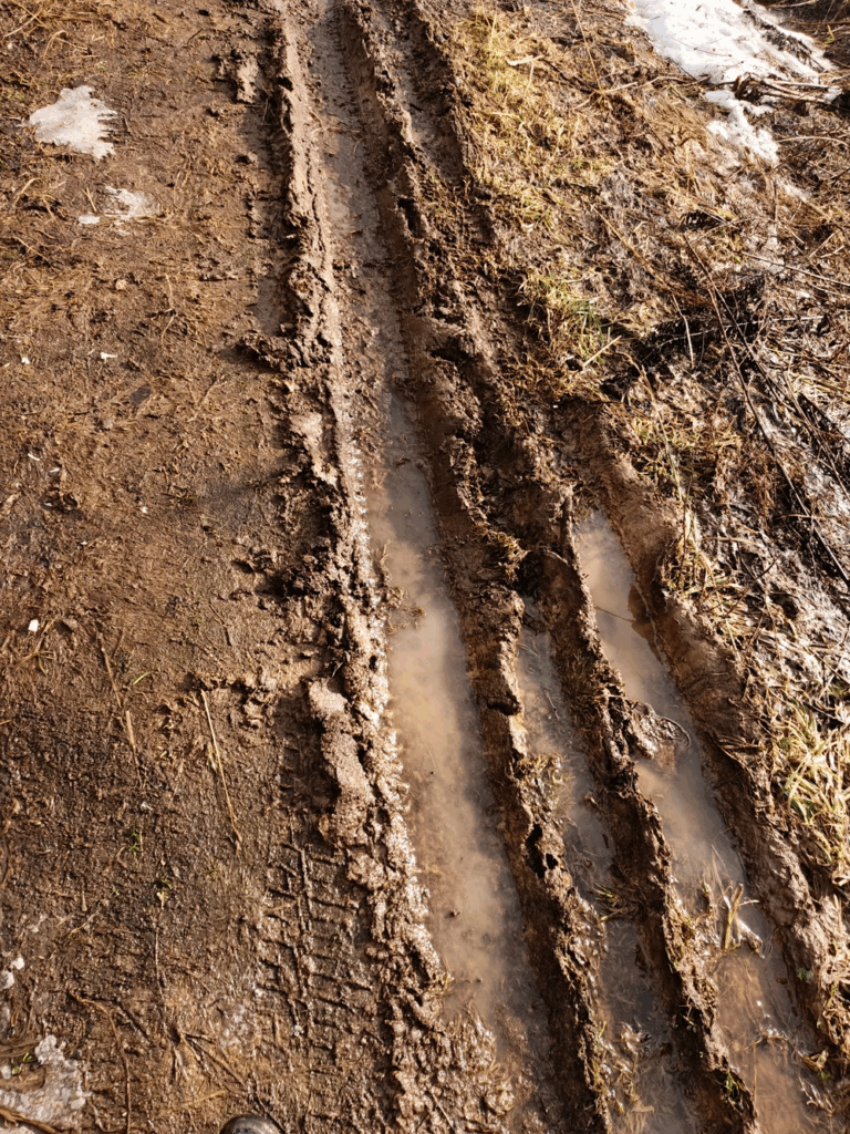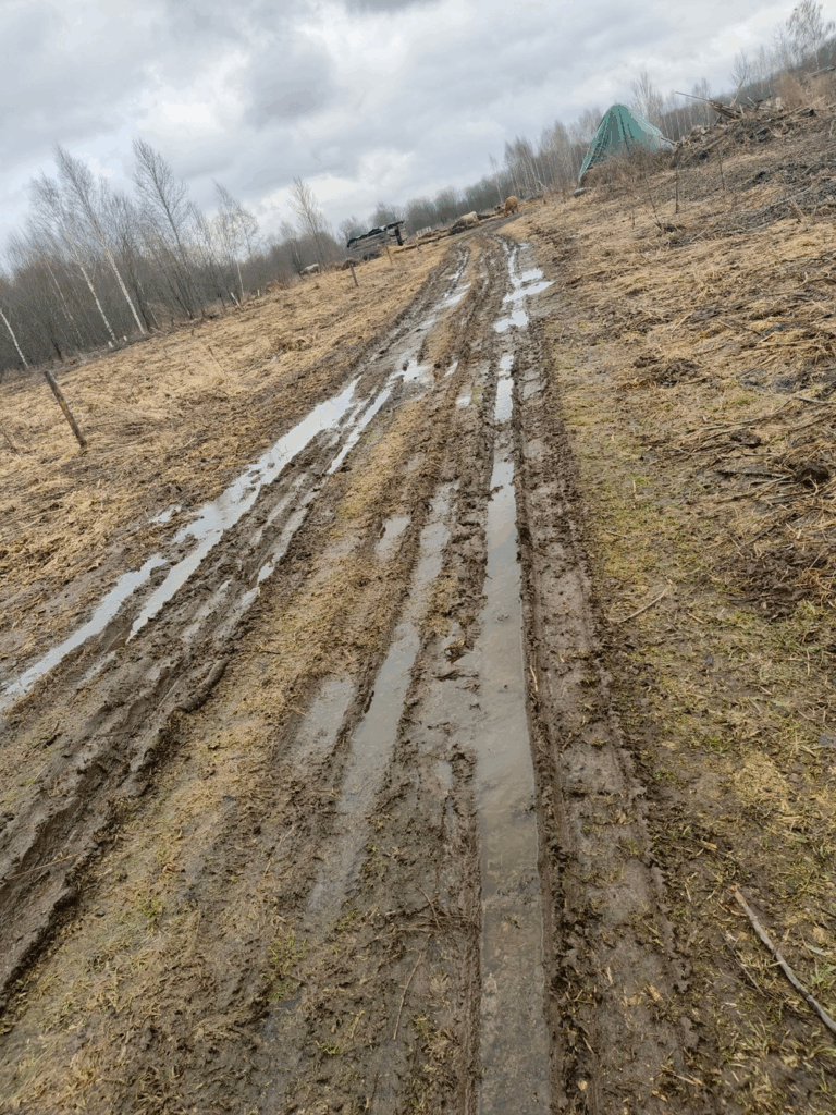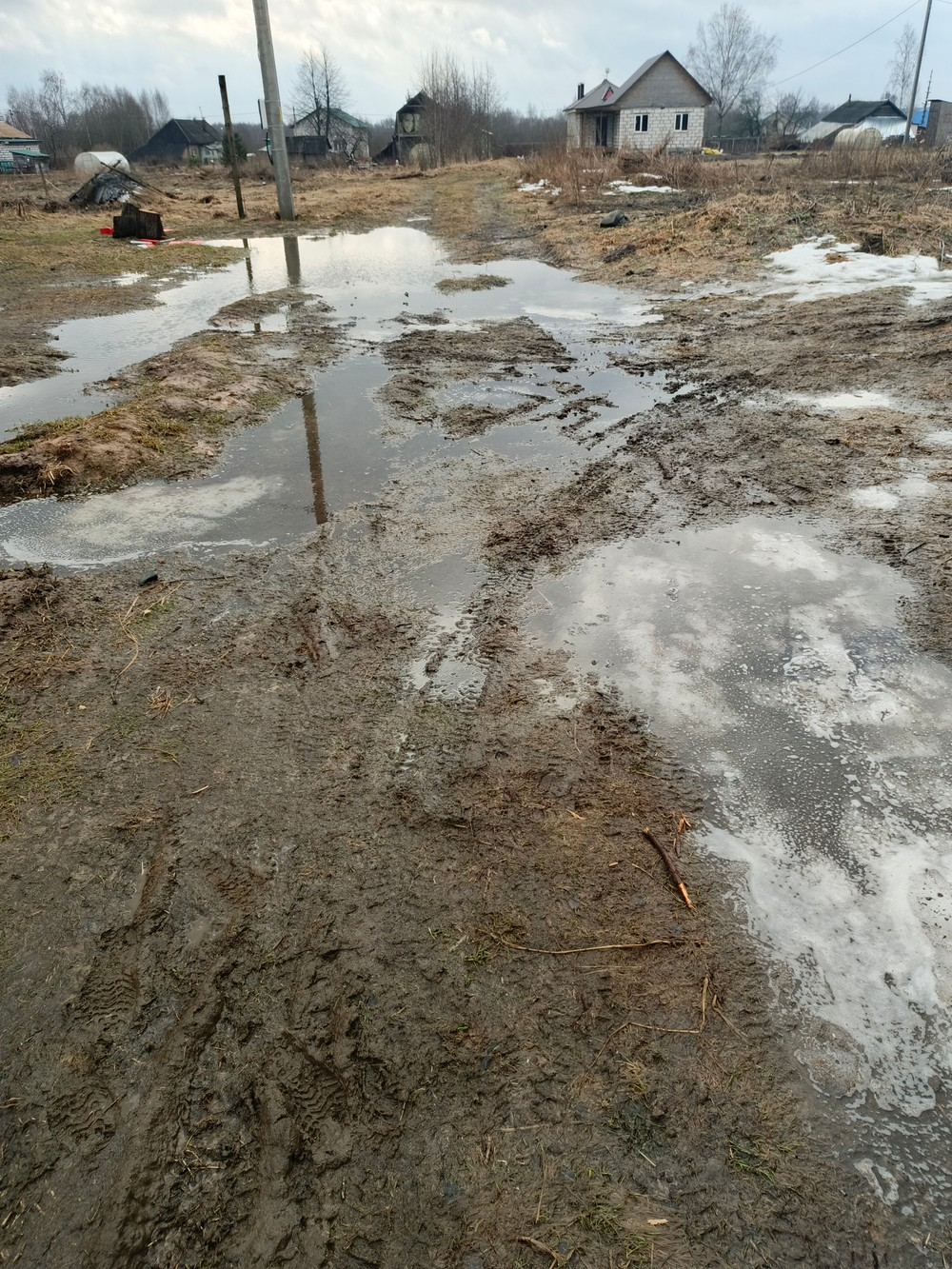 14.03.2025, Костромская область, Костромской район, Бакшеевское сельское поселение, деревня Василёво, дорога к дому 62. Неоднократно обращались в администрацию, чтобы нам сделали подъезд к дому, но воз и ныне там. Тем временем наступила следующая весна, растаял снег, и мне с ребёнком просто-напросто невозможно выехать из деревни — легковая машина застряла.
