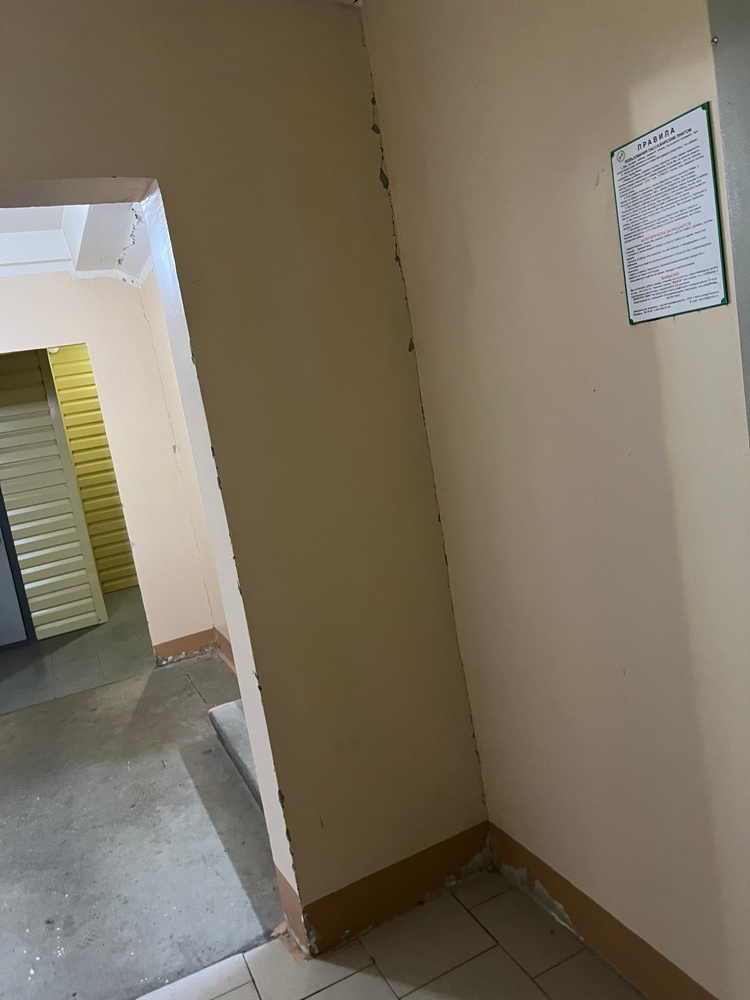 Также требуется покраска двери и перил, а плитка перед входом разрушена. По словам заявителей, с момента сдачи дома в 2017 году ремонтные работы в подъезде ни разу не проводились.