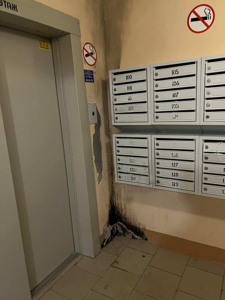 Из города Набережные Челны было получено два обращения о ненадлежащем состоянии подъезда в доме №9 на улице Нур Баян. Жители сообщили, что в подъезде отсутствует косметический ремонт: обсыпалась штукатурка, испорчены почтовые ящики, сгнил низ входной двери, через щель проникают мыши, отсутствует камера на первом этаже.