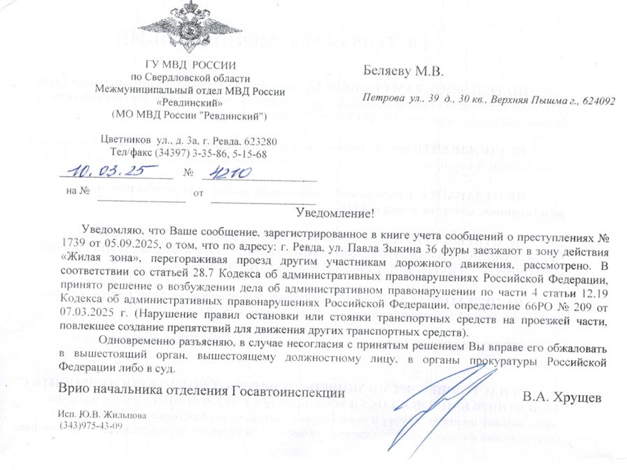 Благодарим неравнодушных граждан за Ваши обращения. Если Вы не согласны с данным ответом МО МВД России «Ревдинский», пожалуйста, сообщите об этом Нам (желательно с фото/видео доказательствами выполнения работы в неполном объеме или ее невыполнении).