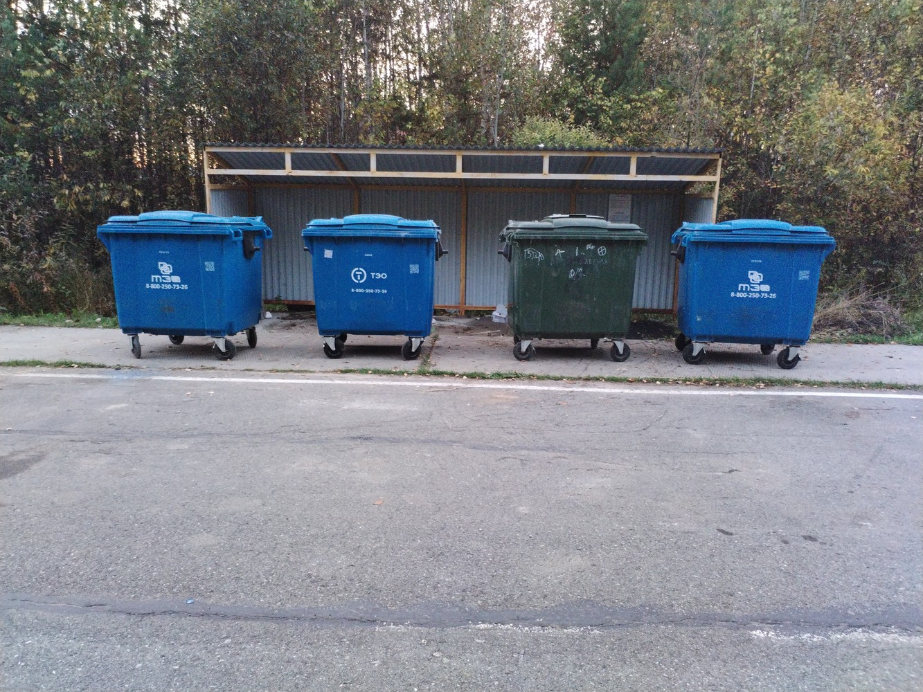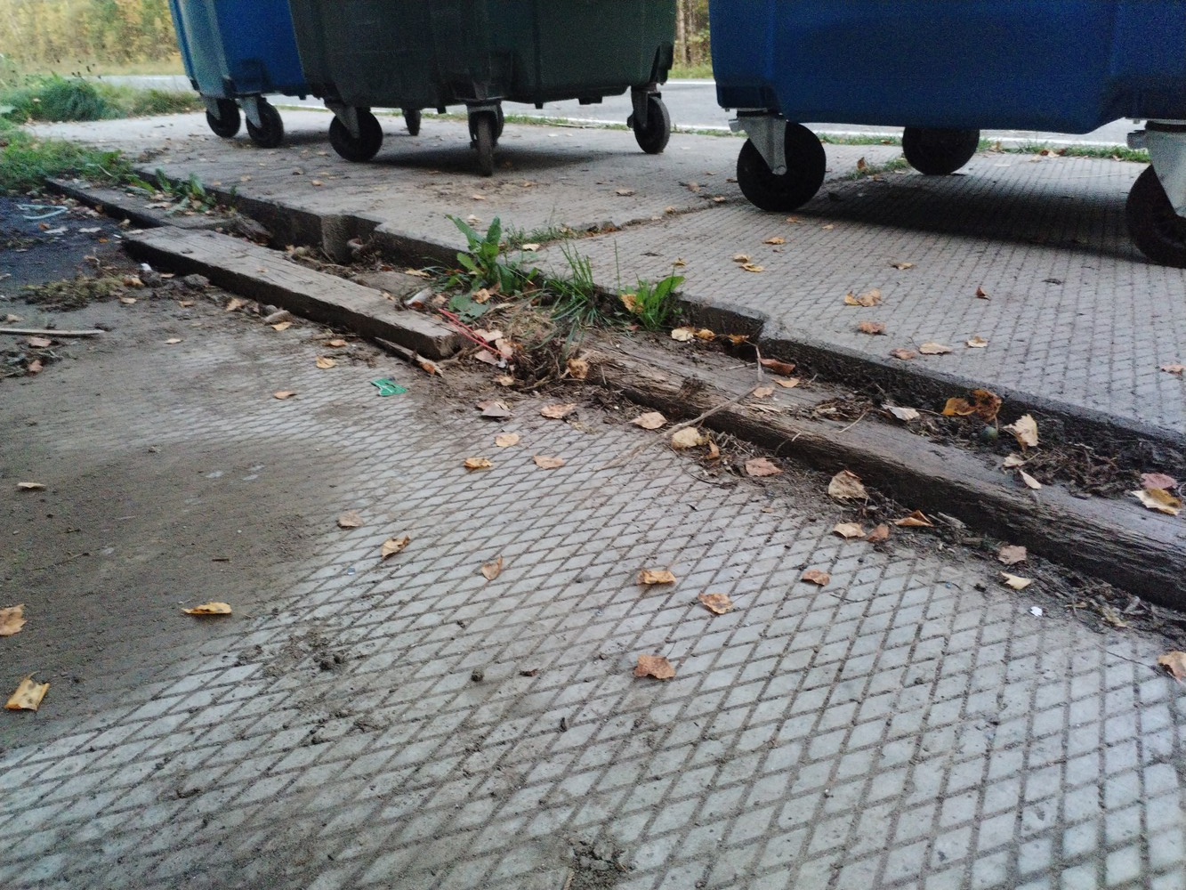 17.09.2025, ул. Промышленная, с. Уват, Тюменская обл. Мусорные баки стоят не на площадке, а на дороге — это небезопасно. Баки не ставят из-за того, что плита, на которой они должны стоять, провалилась, и работники не могут их вытащить. Можно как-то добиться от нашей администрации, чтобы они поправили плиты?