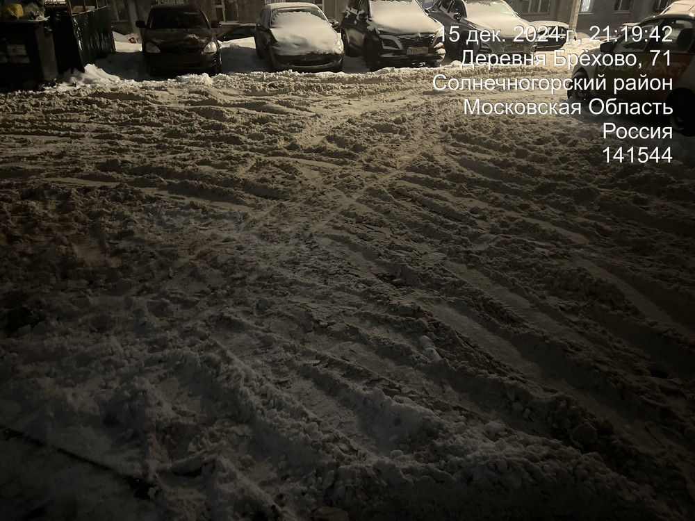 Московская область, г.о. Химки, д. Брёхово, мкр. Школьный, корпус 7. Не чистят дорогу по всему району, ходить невозможно, машины застревают. Сегодня скорая застряла.