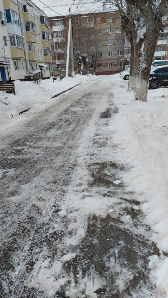 В ответ на обращение местные власти сообщили, что уборка снега и льда на придомовых территориях проводится в соответствии с утверждённым графиком.