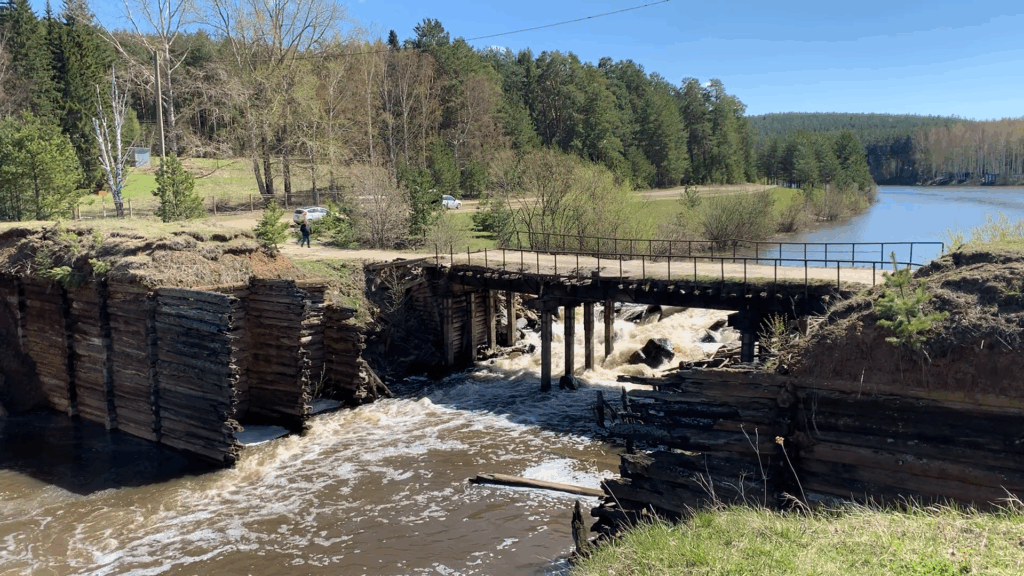 Дорога, для которой добывался щебень пролегает через реку Ревду и через лес. Со стороны реки дорога проходит рядом с разрушенной деревянной плотиной и аварийным мостом, по которому опасно пускать тяжелые КАМАЗы. Весной 2024 года отсыпанную дорогу размыло во время паводка.