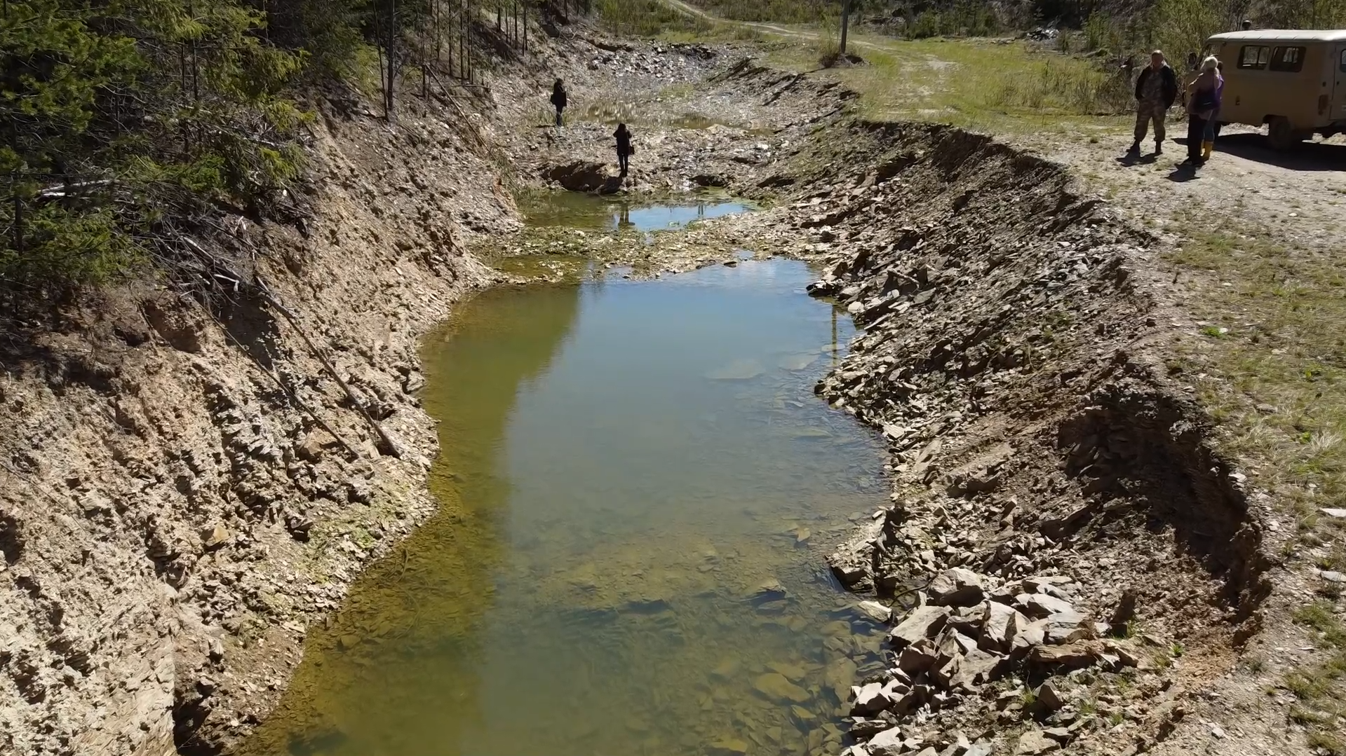 В-третьих, для строительства глэмпингов возле воды была проложена дополнительная дорога через реку. Предположительно именно для строительства этой дороги и был вырыт карьер, который жители обнаружили полтора года назад. Выработка производилась экскаватором, и выработанная порода большегрузами перевозилась в поселок. На сегодняшний день добыча приостановлена, а карьер так и стоит ничем не огороженный. Жители предполагают, что разрешений на выработку у предпринимателя нет.