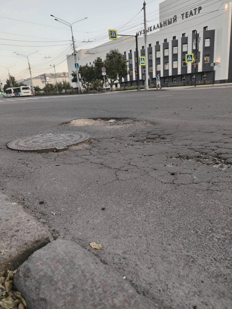 ОБНОВЛЕНИЕ: получен ответ по данному вопросу — Яму на перекрестке Мира – Профсоюзов в Красноярске обязали устранить до 28 июля