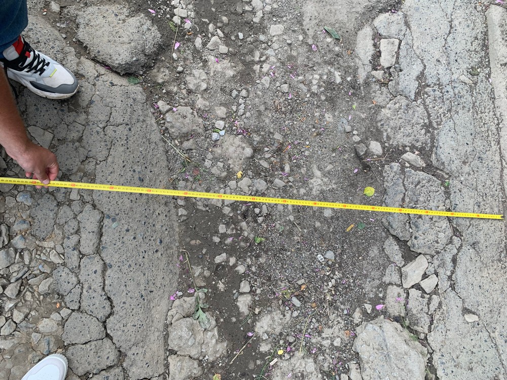 Свердловская область, г. Березовский , ул. Декабристов, д. 21. Дорога во двор, яма шириной во всю дорогу и глубиной более 20 см.