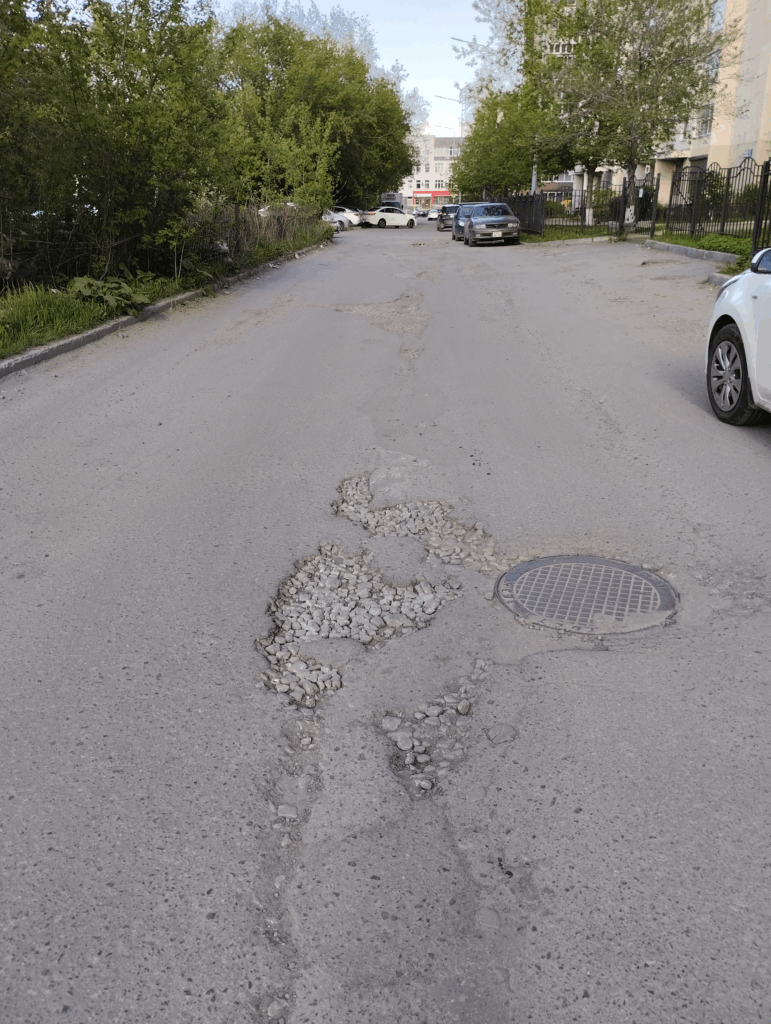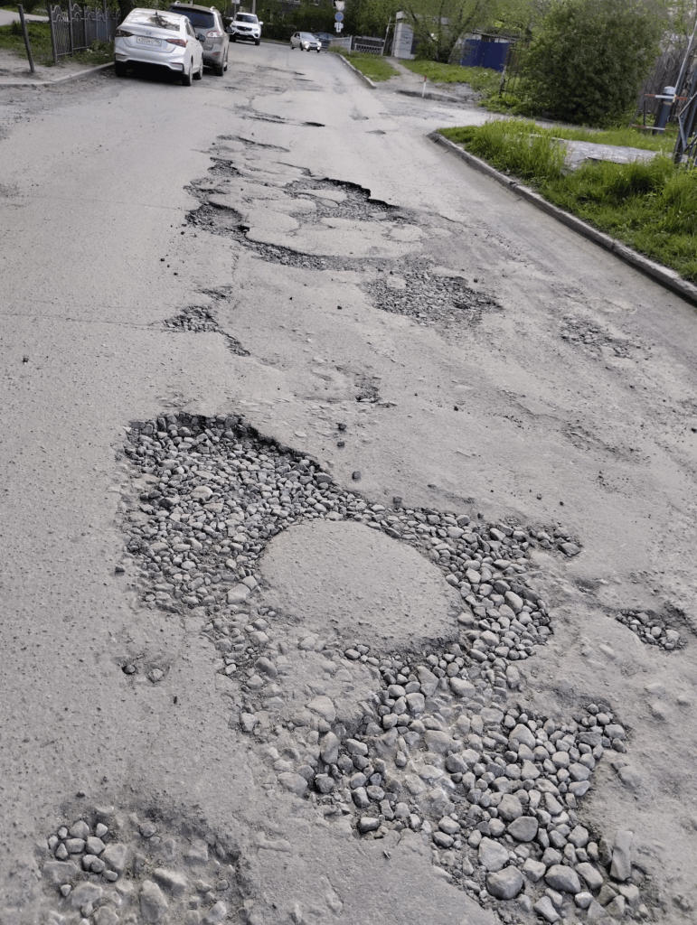 22.05.2025, 20:00, г. Екатеринбург, р-н Нижне-Сортировочный, ул. Крупносортщиков. Дорога по всей улице третий год разбита грузовым транспортом, в планах на ремонт не значится.