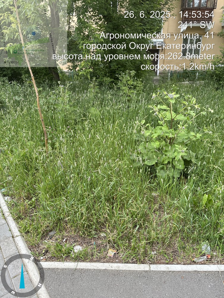 Из Екатеринбурга было получено обращение о несвоевременном покосе травы возле дома на улице Агрономической, 41. По словам заявителя, придомовая территория заросла, в отличие от соседнего дома №39, где трава скошена. Жители связывают это с разницей в подходе управляющих организаций: в одном случае работает ТСЖ, в другом — УК «РЭМП УЖСК».