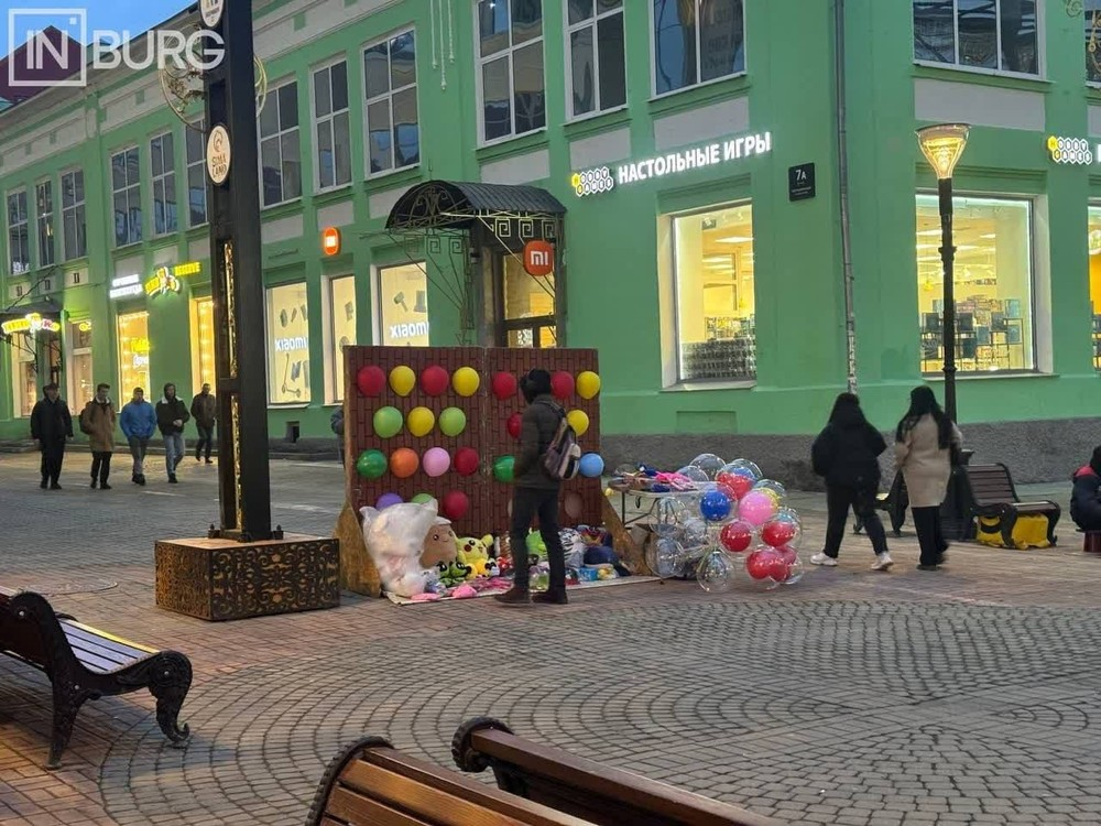 1 Апреля 2024 год. Город Екатеринбург, улица Вайнера и Плотинка. По моему, такое недостойно Екатеринбурга. Почему это опять появляется? Что за страсть превратить город, исторический центр города, в самое худшее подобие того, что в 90-ые было? Жители города Екатеринбурга просят закрыть уличные аттракционы «Лопни шарик». Провести проверку взять на контроль и принять строгие меры.
