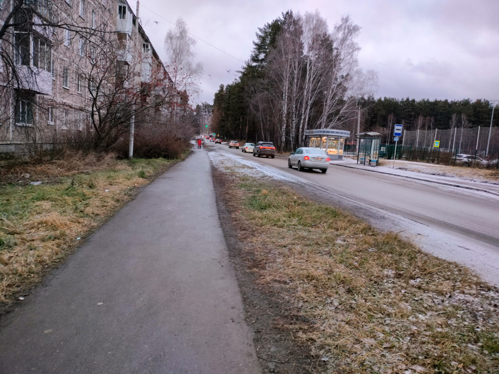 Из Екатеринбурга было получено обращение о небезопасных условиях для пешеходов в микрорайоне Компрессорный. Жители сообщают, что на тротуаре возле дома по улице Латвийской, 36 отсутствует ограждение, и дети, идущие в школу, оказываются слишком близко к проезжей части.