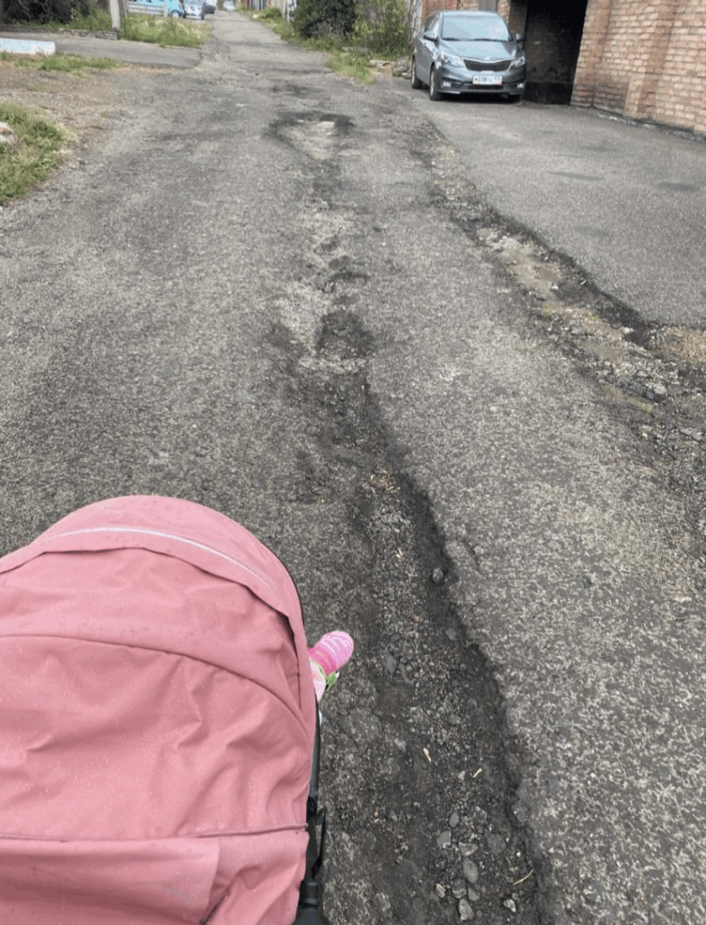 В результате ремонта дорог этих улиц было продавлено дорожное полотно по улице Рысакова (ездили именно по этой улице: спецтехника (трактора, грузовые машины и т.д.), так как по тем улицам было ездить невозможно). На данной улице имеются повреждения, трещины, проваливаются колодцы (колодцы и ямы своими силами немного засыпали). На нашей улице много детей, в том числе маленьких, которые передвигаются на колясках. С ребенком невозможно гулять по улице, коляска проваливается, а если что случится с ребенком, кто будет отвечать?