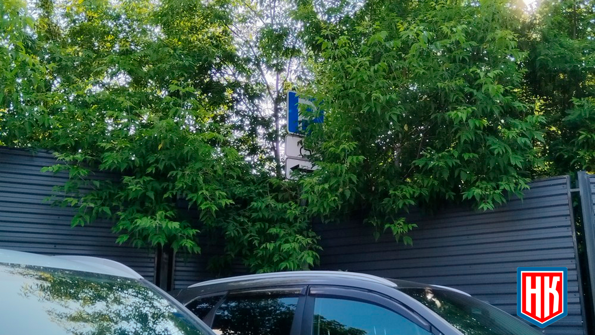 Из Казани поступило обращение о проблеме с дорожным знаком «Парковка для инвалидов» в жилом комплексе «АртСити». Жители сообщают, что знак полностью зарос листвой деревьев, делая его практически невидимым, при этом обращение в администрацию Советского района не привело к решению проблемы.