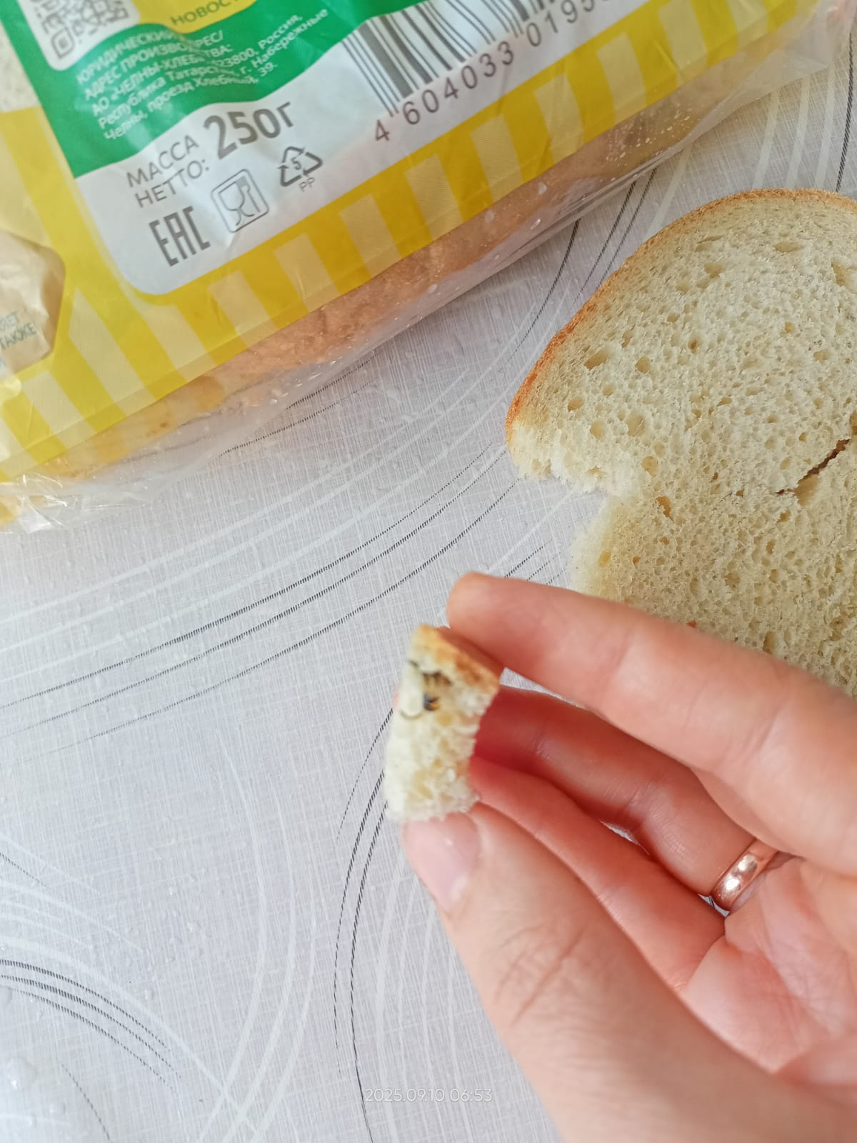 Хотела обратить ваше внимание на качество изготавливаемой продукции «Челны-Хлеб». 09.09.2025 г. приобрела пшеничный хлеб в сети «Магнит», г. Нижнекамск, ул. Студенческая, 12А. Дата свежая, текущая, но в самом хлебе обнаружен посторонний предмет (насекомое). На электронную почту производителю также направила жалобу 10.09.2025.